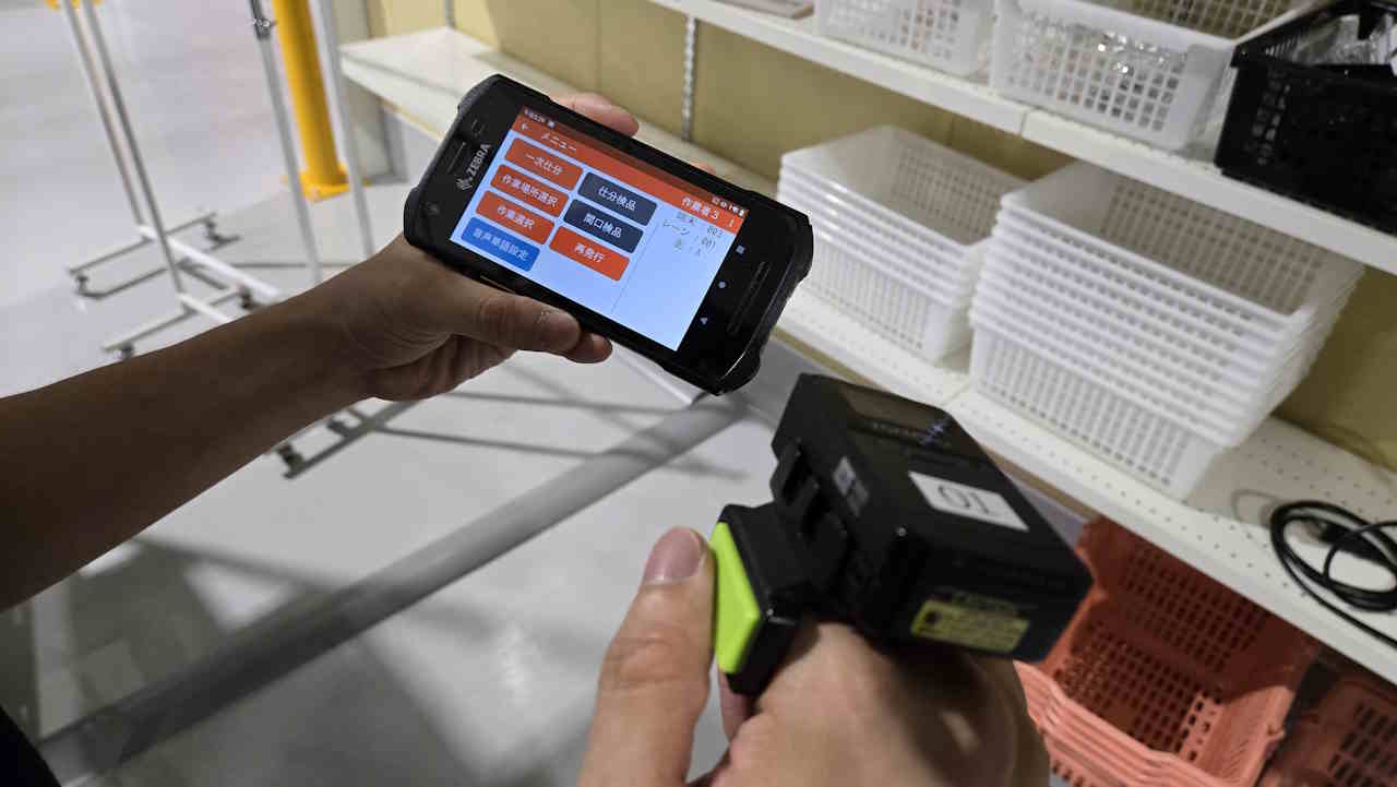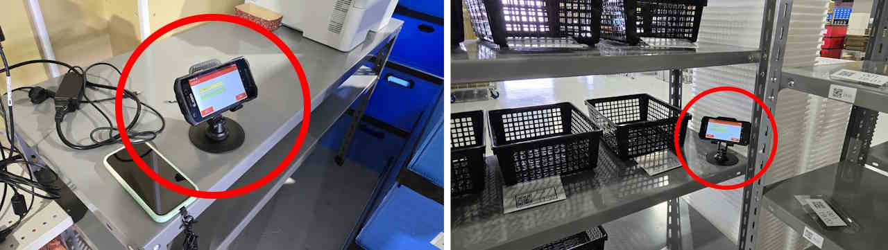 仕分けをするシステムなので、動き回りますから、スキャナーもスマホも持ち歩く必要があります。