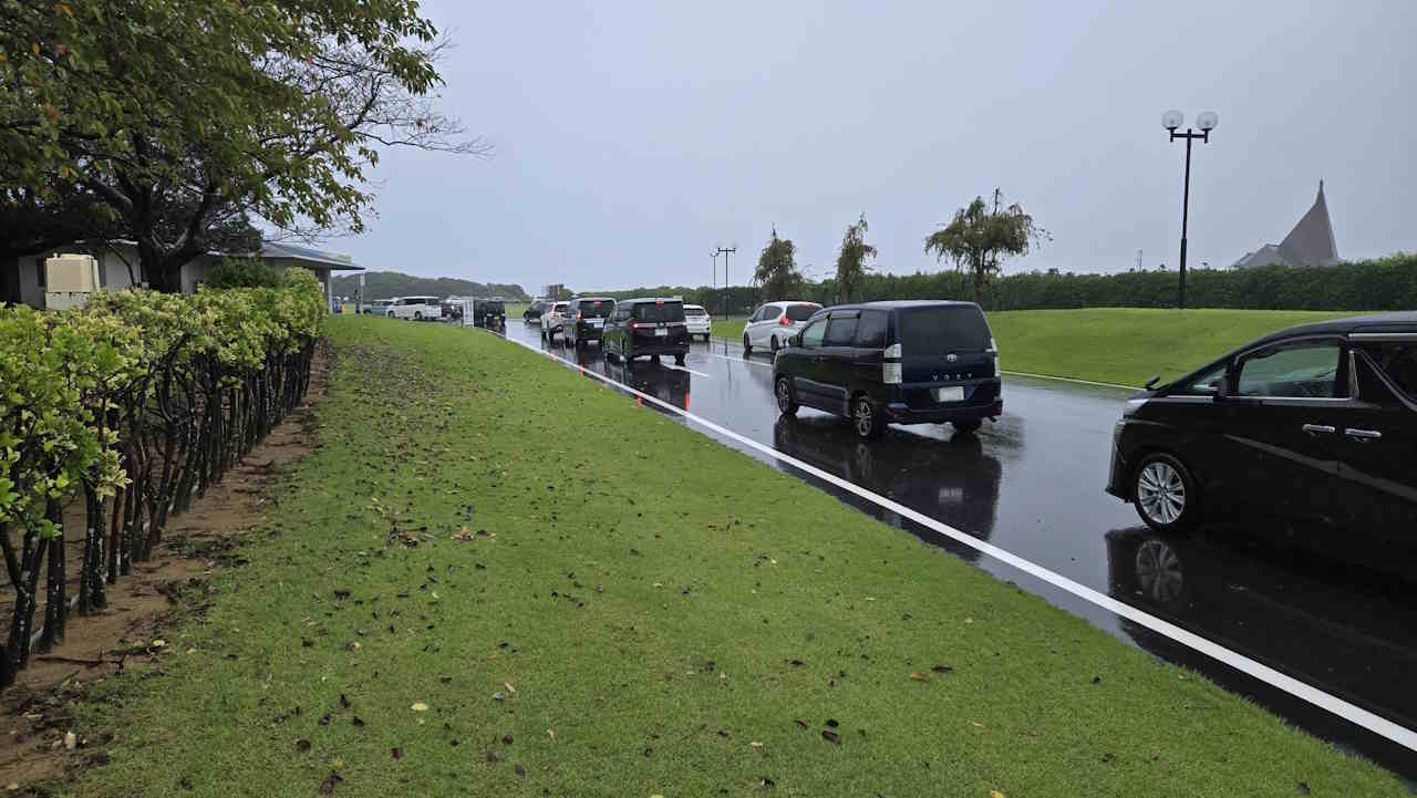 ほかの仲間は大丈夫だろうかとりあえず並びました……そして今年は結構な雨模様でした。