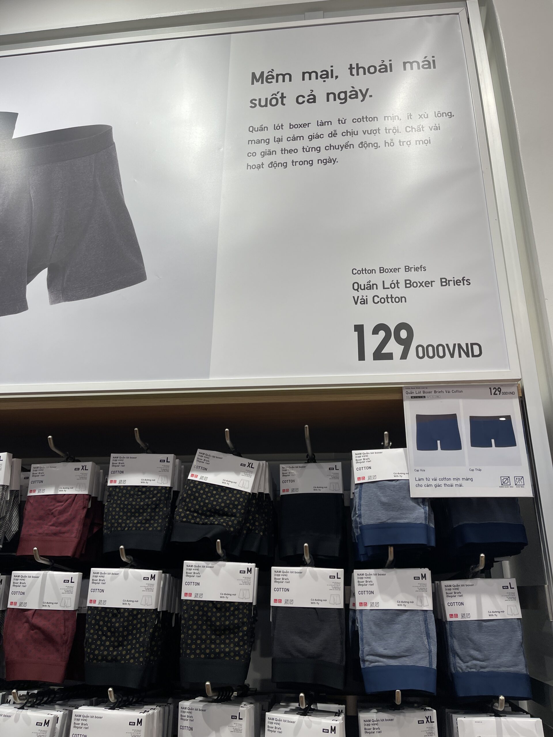 イオンモール内のユニクロ。トランクス129000ドン。日本円で760円くらい。