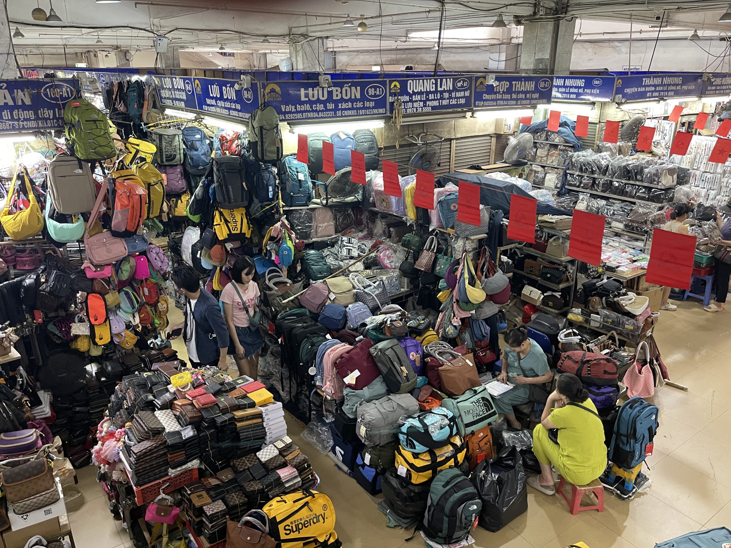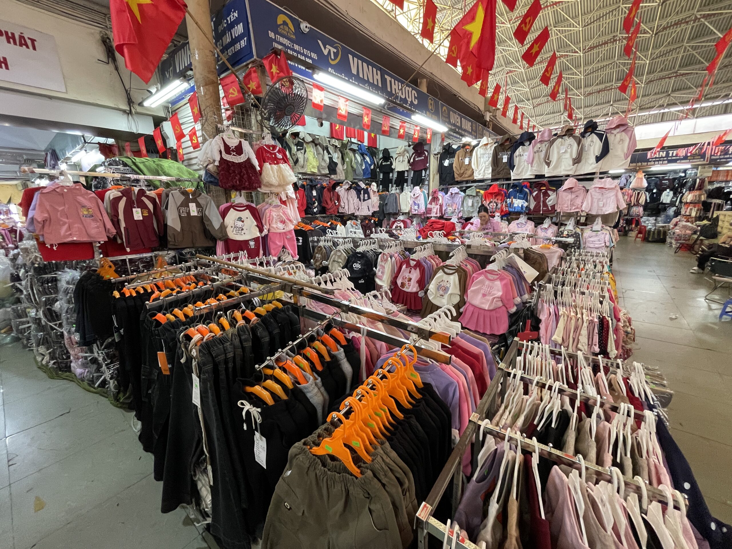 市場は多数の店舗が衣類や生活雑貨を販売しています。日本の問屋のような形です。