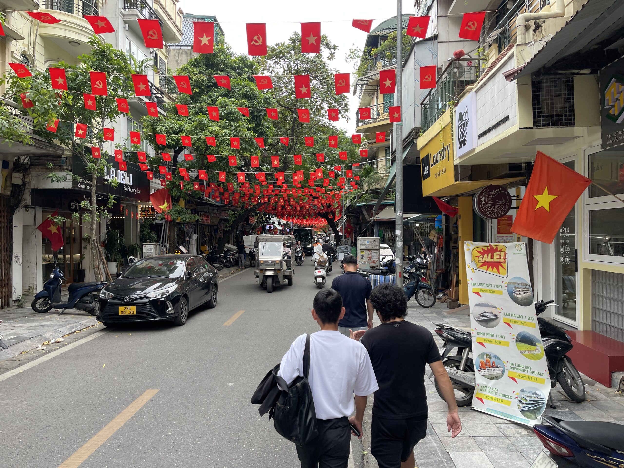 いたるところにベトナムの国旗。