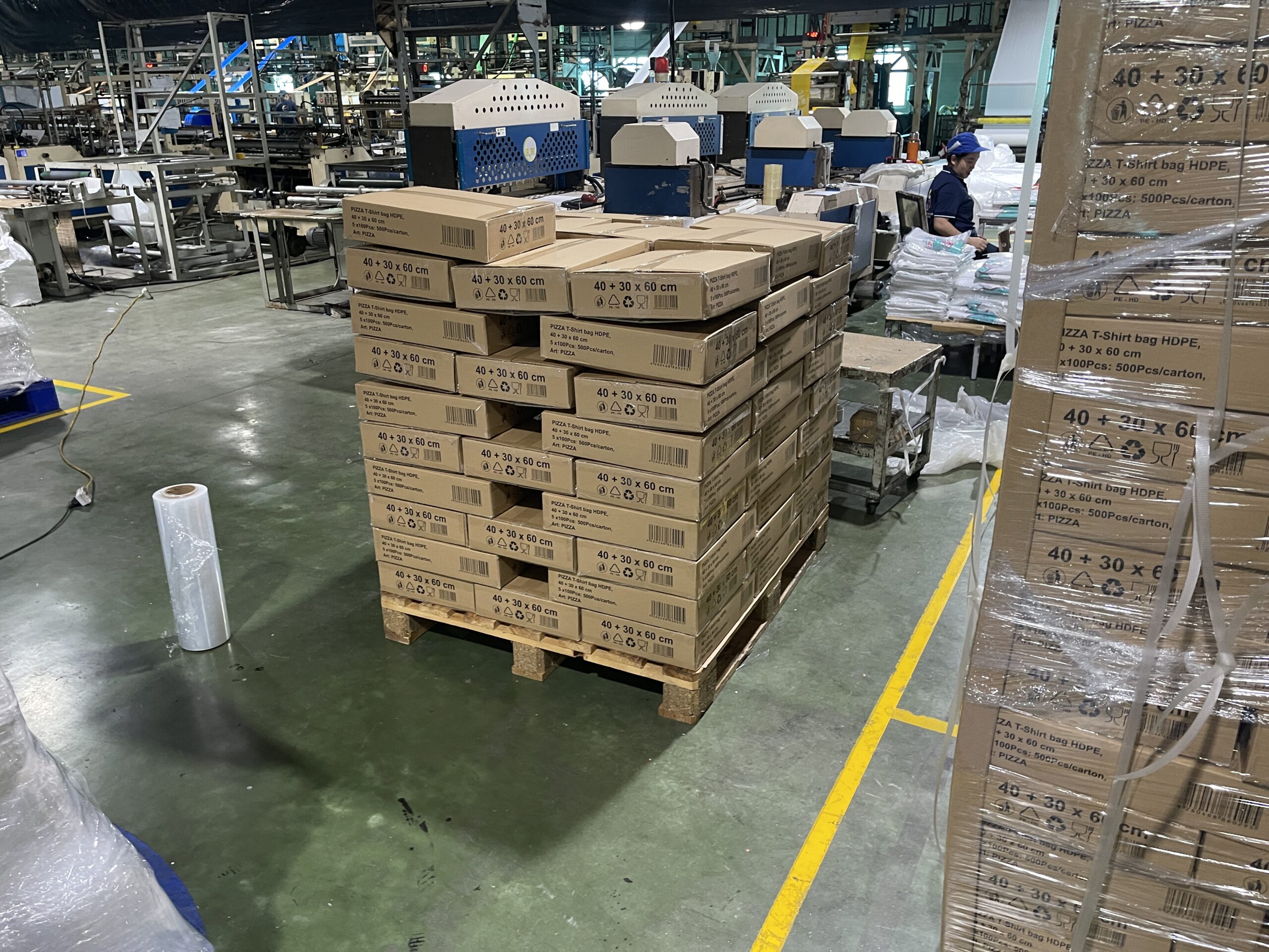 この工場で生産されたビニールの梱包袋が日本にコンテナで輸送され、弊社に届きます。