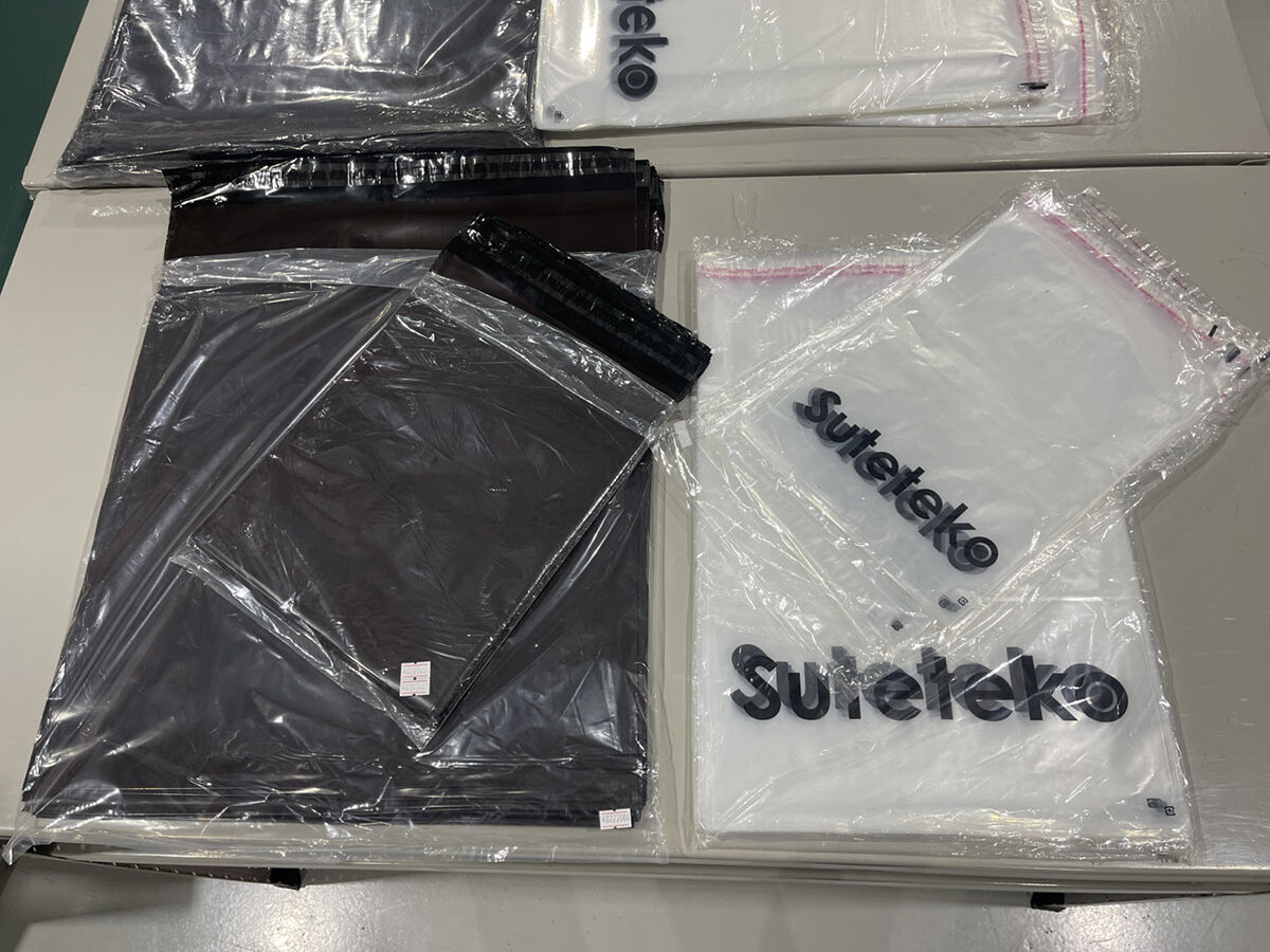発送時には中身が見えないビニール袋で梱包していますが、コストを抑える為に、こういった袋はベトナムで生産して、コンテナで日本に輸送しています。