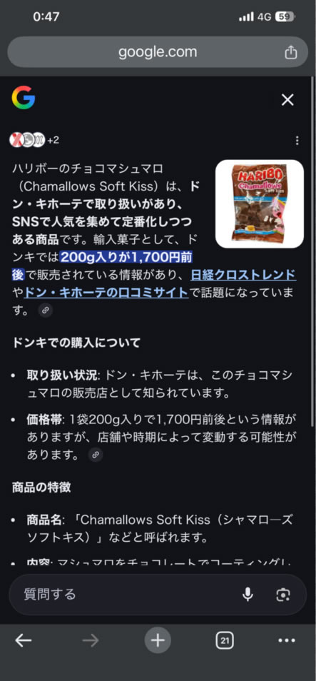 HARIBOのチョコマシュマロというのは、ネットで人気のお菓子で、ドラッグストアコスモスで1度買ったことがある。