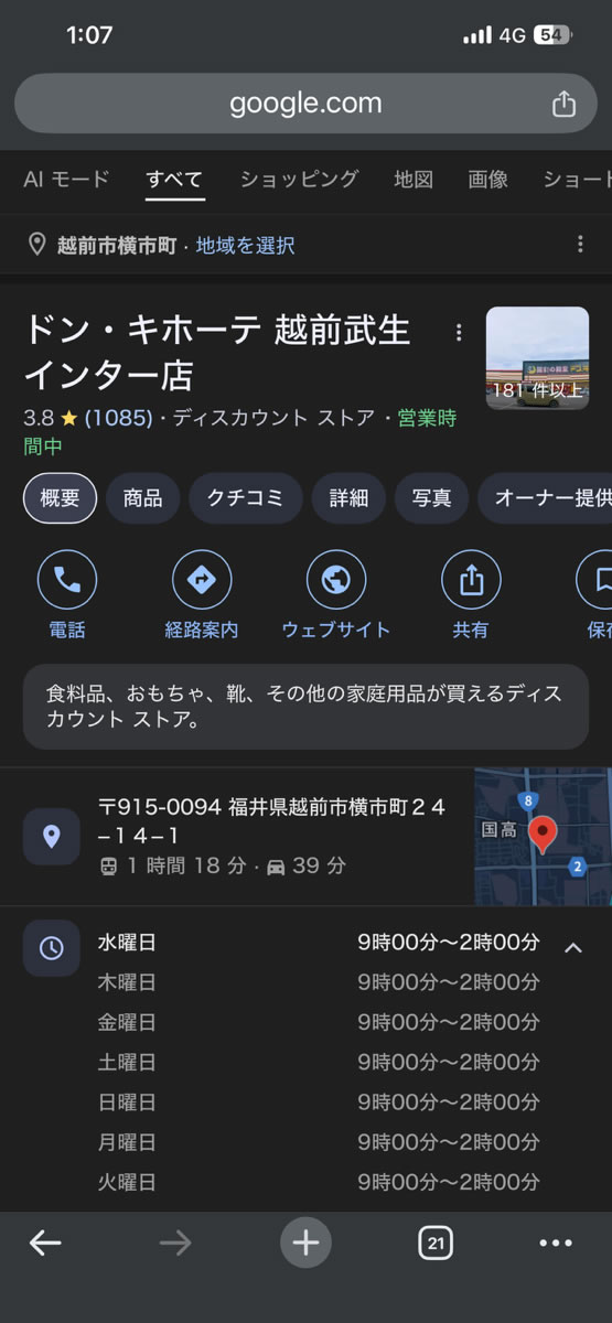 ネットで調べると、武生のドンキは深夜2時まで営業。今1時過ぎ。いける。