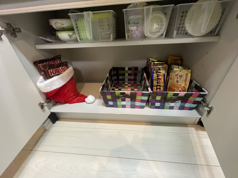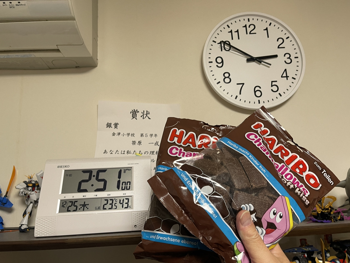 HARIBOのチョコマシュマロを2つ、お菓子の戸棚に入れて、ミッションコンプリート!