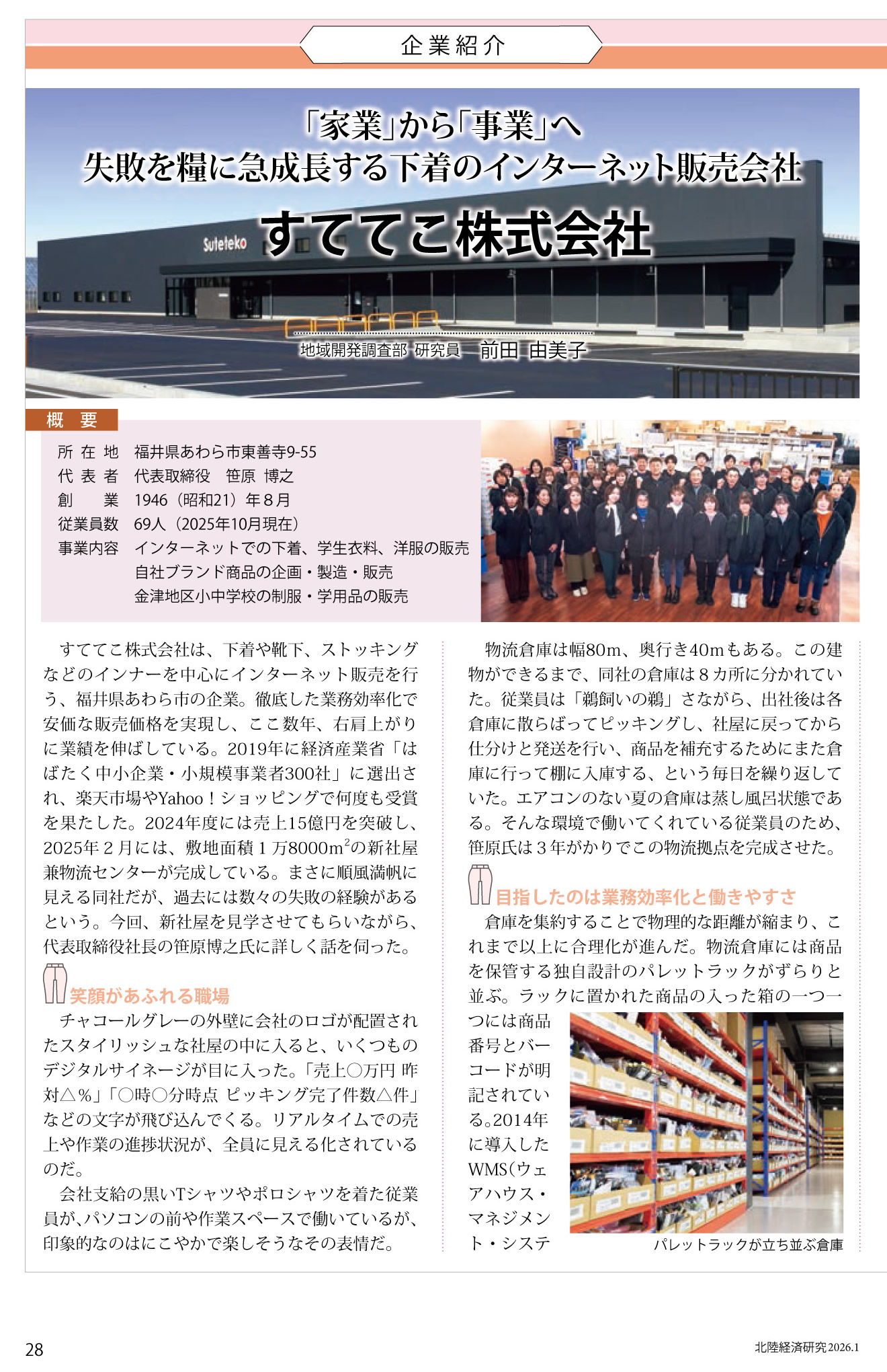 北陸経済研究所が発行している「北陸経済研究2026年1月号」に掲載していただきました。